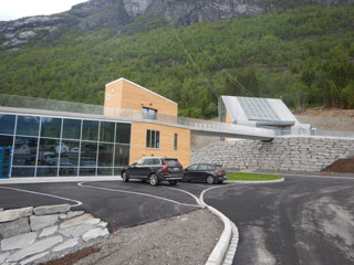 Restaurantbygget med sine store vindusflater med panoramautsikt utover Nordfjord har også en takterrasse som er like stor som selve bygget. Den totale høydeforskjellen fra fjorden opp til fjellet Hoven er i overkant av 1000 meter. De to gondolvognene, som har fått navnet Hugin og Munin, tar hver inntil 45 personer i slengen.