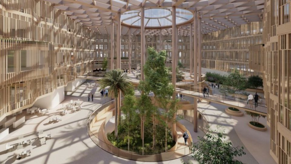 Fra utsiden vil nybygget fremstå lyst og moderne, med en svevende uttrykksform som harmonerer med de bevarte fasadene fra den opprinnelige Trikkestallen. Inne i bygget venter et frodig, nærmest eventyrlig atrium som binder de tre fløyene sammen og skaper et unikt arbeidsmiljø.