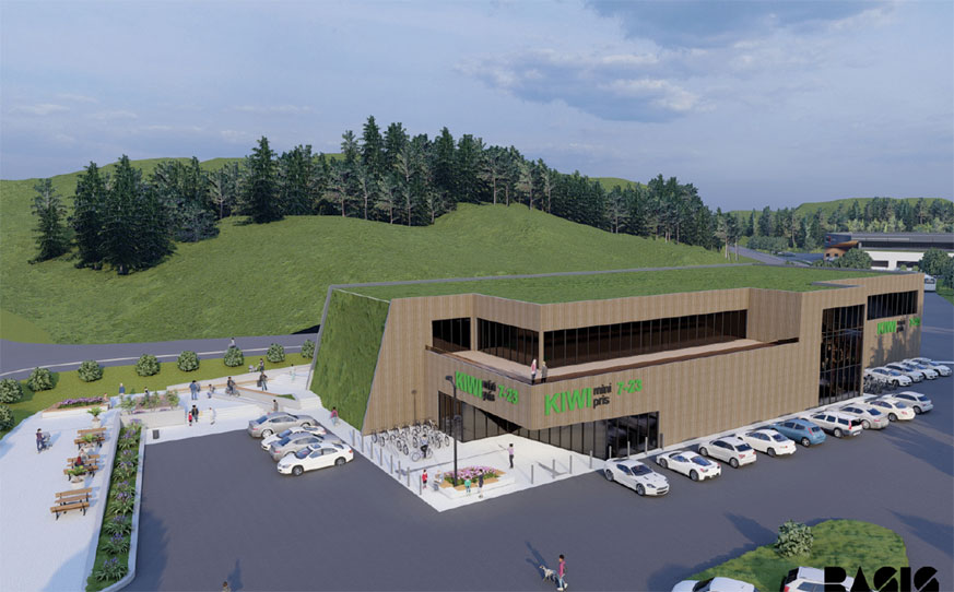 Selve byggingen av det nye forretningssenteret startet i april 2024 til en anslått kostnad på 60 millioner kroner. Brutto arealet på bygget er 3.800 kvadratmeter. Byggherre er Drangsvann Næring AS.
